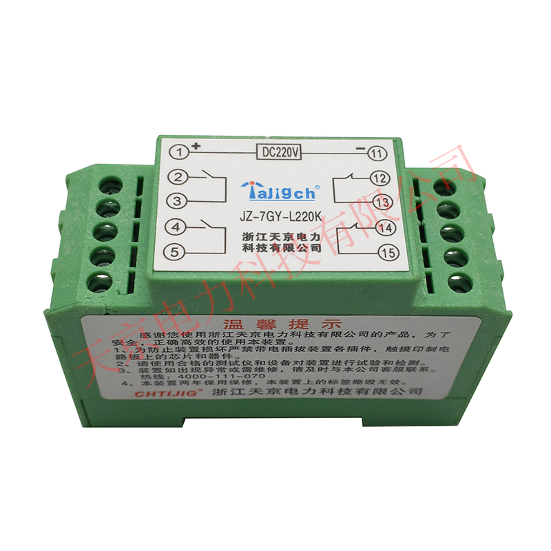 空白:無防塵罩; K:帶防塵罩及控制回路; B:大容量帶防塵罩及控制回路觸點數(shù)量:常開常閉轉(zhuǎn)換S:小功率中間; L:大功率中間Y:直流; J:交流端子排系列產(chǎn)品天京電力科技有限公司專用型號集成電路靜態(tài)中間繼電器